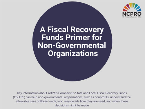 This is an introduction to what nonprofits and Non-Governmental Organizations (NGOs) need to know about State and Local Fiscal Recovery Funds in North Carolina.